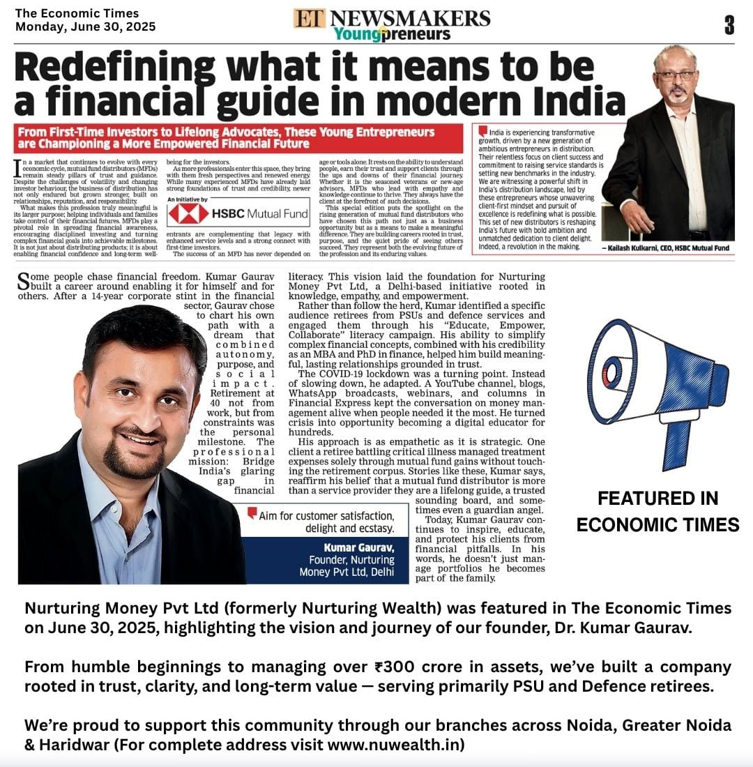 I can just say, Dr Kumar Gaurav and his team just creates a "WOW". Me and my family, being from non finance background, find a trusted, prudent and unbiased advisor in him.
